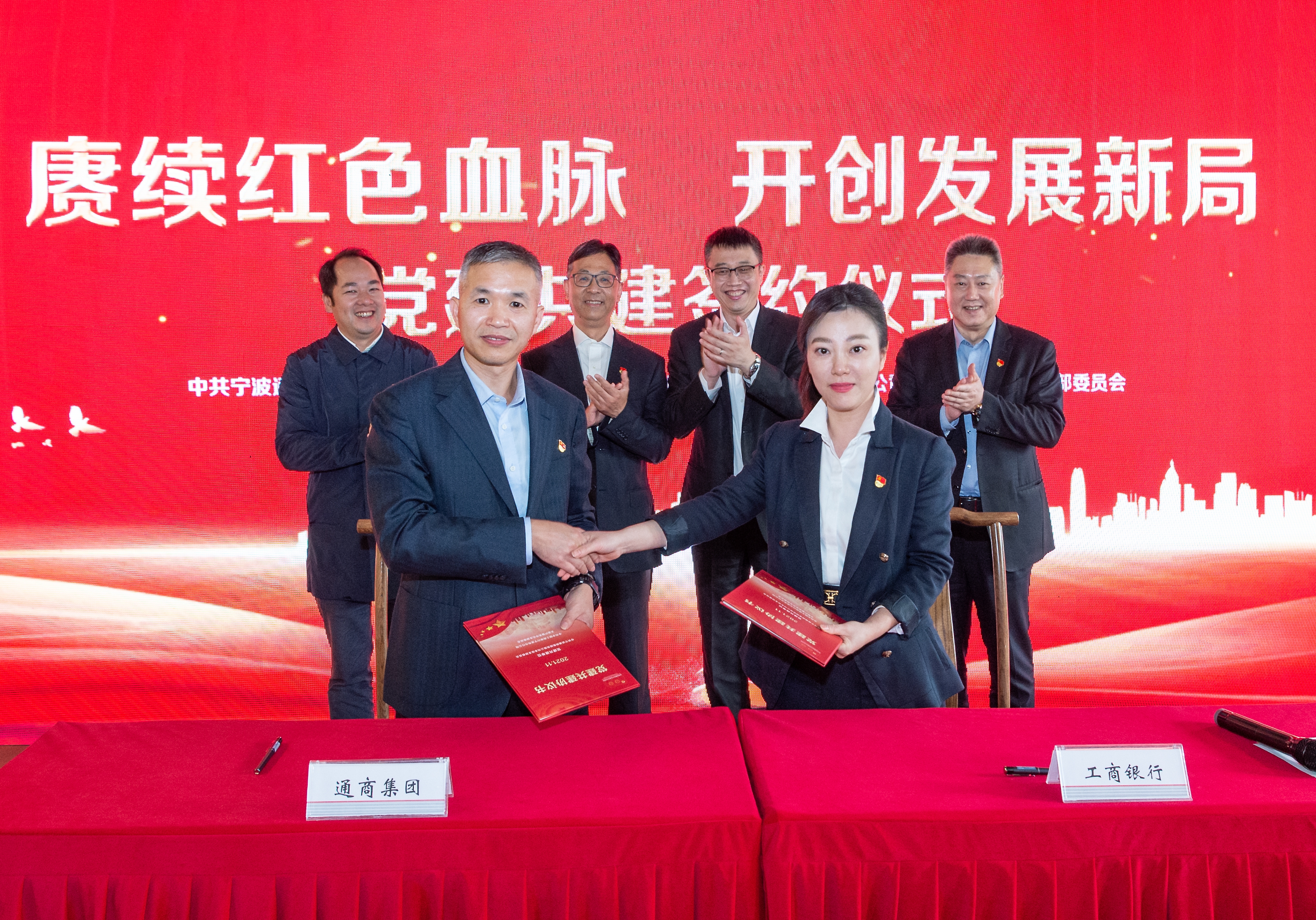 会上,宁波通商集团本级党支部与工行宁波市分行公司大客户中心党支部签订了党建共建协议并举行了授牌和赠书仪式。宁波通商集团领导班子成员梅旭辉、楼松松,工行宁波分行领导陈霄以及相关支部全体党员参加了学习和共建活动。