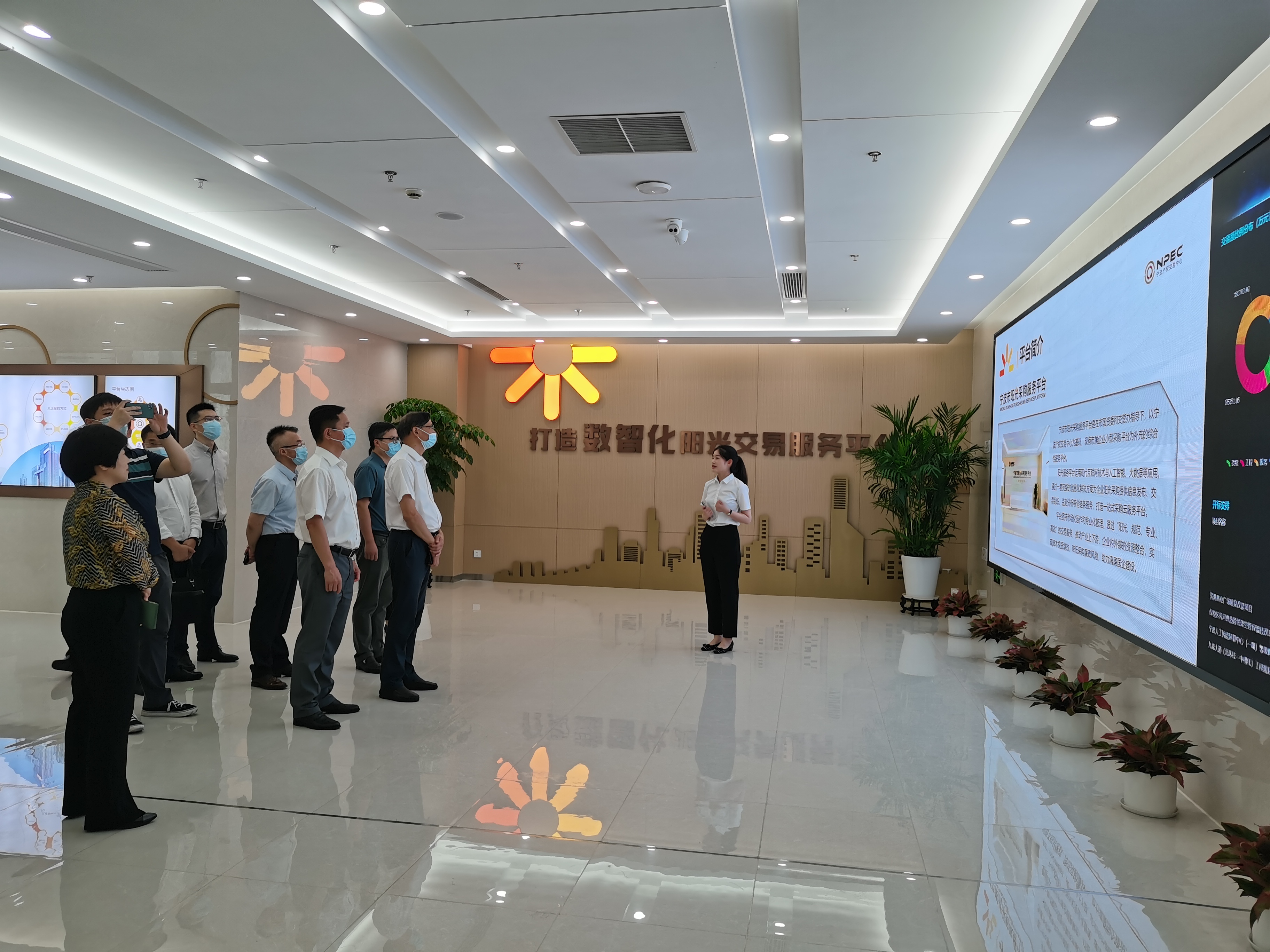 黄克旭一行实地参观了宁波市阳光服务平台的子平台——宁波市阳光采购服务平台(以下简称“采购平台”)线下开评标场所、线上交易系统和预警监督模块,并听取了采购平台的建设及运营情况、存在问题和下一步工作计划的汇报,详细了解了采购平台如何成为宁波市国资国企数字化改革从“小切口”催生“大场景”的创新应用,以及如何在公权力大数据监督中发挥作用。